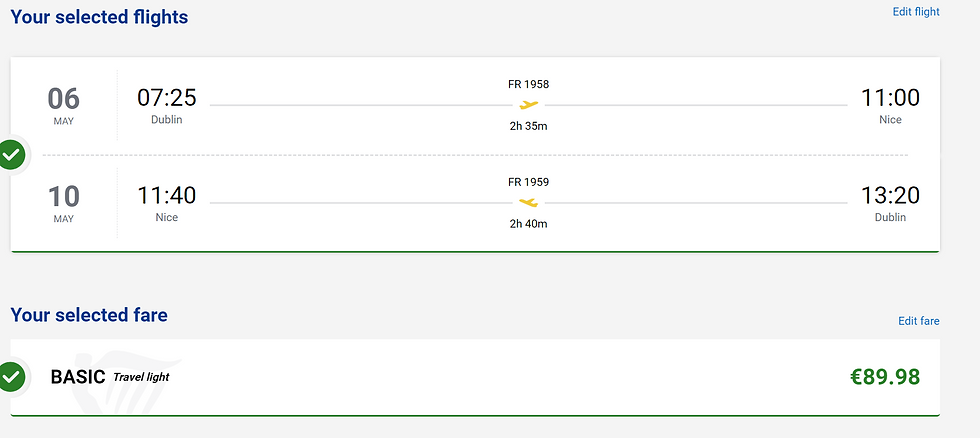 Dublin-Nice 6th - 10th May From €335PP (4 Nights)